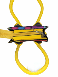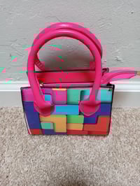This handbag has leather strap handles with various colorblock colors and has a zipped closure. Comes with an adjustable crossbody strap. Other colors available.